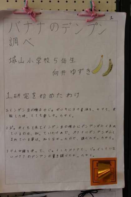 写真上:「バナナのデンプンしらべ」 5年 向井 ゆずき