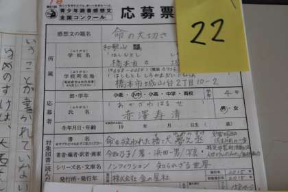 写真上:「命の大切さ」 4年 赤澤 寿清
