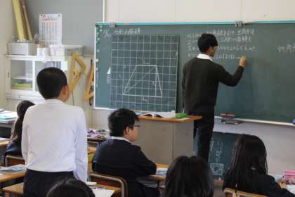 今日は、昨日学んだ 台形の面積の求め方以外の方法を みんなで考えました。