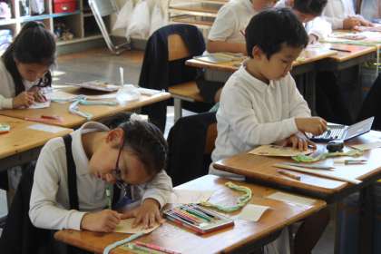と、みんな メッセージを考えたり、色を塗ったりしていました。