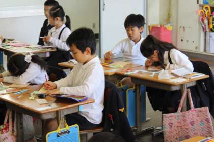 今日の生活科の時間は、1年生に渡す「おもちゃランド」の招待状を作りました。