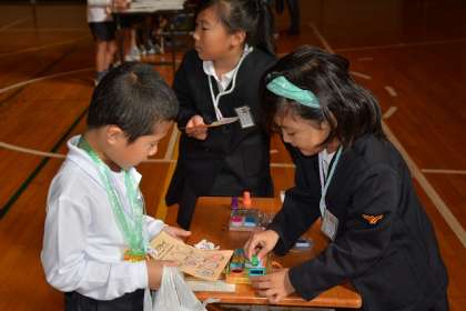 写真 上:おもちゃランドのコーナーで遊ぶと、