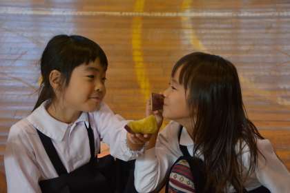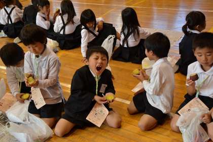 おもちゃランドでいっぱい遊んだ後は、おいしいお芋をみんなで食べました。