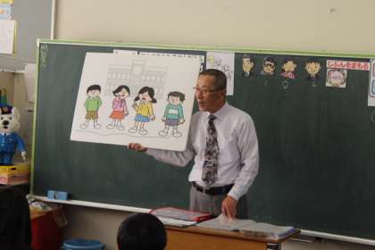 今日は、「キッズサポート教室」がありました。和歌山県警察本部生活安全部少年課少年サポートセンターから、先生に来ていただいて、授業をしていただきました。