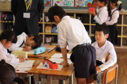 その後、グループに分かれ、少人数教室の中にある物で 測りたい物を