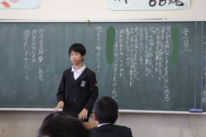 子どもたちは、朝から意見をぶつけ合いました。テーマは、「城山楽しんでくだ祭で何をするか。」。一生懸命 自分たちの仲間に引き込もうと意見を言い合ったり、質問し合ったりしました。