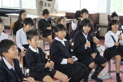 リコーダーをケースから出すと少しひんやり。自分の手の温もりで、リコーダーを温めています。