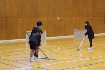 新しいぞうきんを一人一枚握って体育館へGO!!
