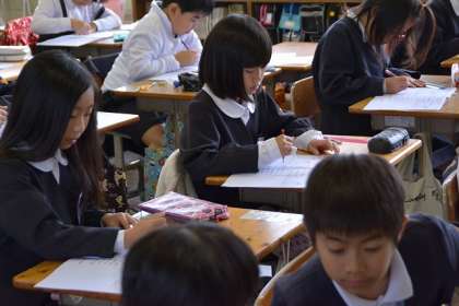テスト返しをした後、計算ドリルの答え合わせをしました。