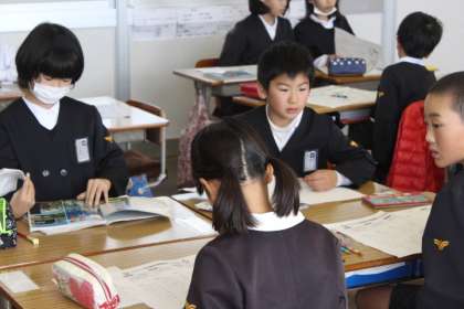 社会科の学習で、地域の発展につくした人について、復習をした後、グループに分かれて、都道府県名の学習をしました。