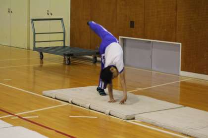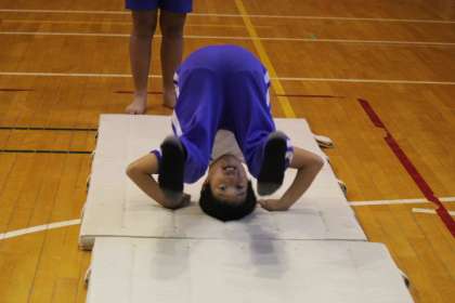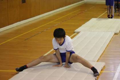 今日は雨が降っていたので、マラソンではなく、マット運動。今まで練習してきたことを再確認しました。