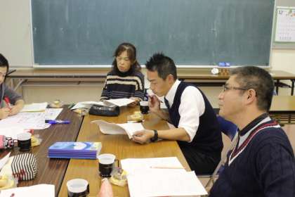 今日は、2時間目に研究授業がありました。放課後に、授業についての話し合いをしました。