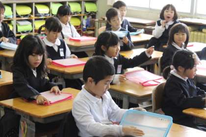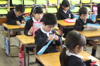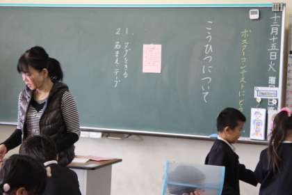 1年生は、この冬 初めて硬筆をします。練習の道具について説明をしました。