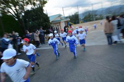 1キロメートルを走りきり、どの子も 必死ないい顔をして