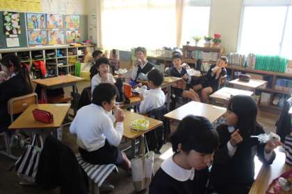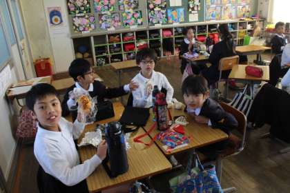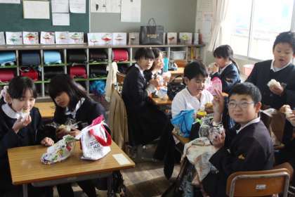 友達と話しながら、みんなおいしそうにほおばっていました。