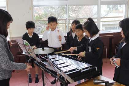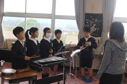 楽器の音の重ね方を工夫したり強弱をつけたりと、みんなで案を出し合って、音楽作りを頑張っています。