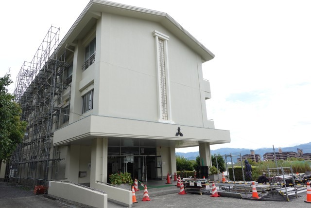 7月から始まった南校舎の外壁工事も終盤に差し掛かってきました。南校舎全体を覆っていた足場も少しずつ解体されています。