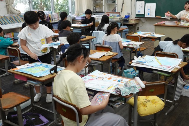 中:3B 図工 描いていた絵はどんどん完成した子が出てきているようです。出来上がった子から、新しい課題に取り組んでいます。遊んじゃうのではなく、きちんと次の課題に取り組めるのはすばらしいですね!
