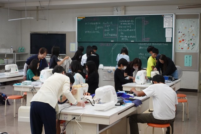 中:6A 下:6B 家庭 ずっと取り組んできたエプロンづくりも完成しつつあります。満足そうな子ども達の顔が印象的です。最後の追い上げに入っている子達もあせらず、すばらしい、ずっと使いたくなるエプロンを完成させてくださいね。