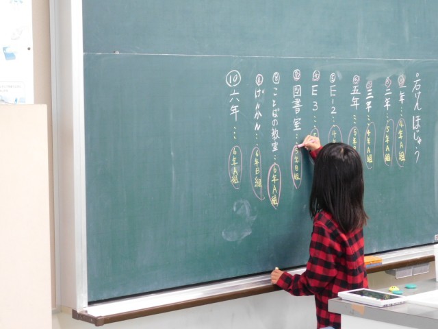 最初に、委員長・副委員長・書記を決め、その後、石鹸補充を行う場所の確認や割り当てをしました。