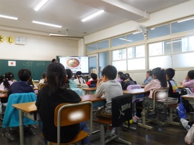 ティファニー先生の自己紹介を聞いたり、自分たちの好きな食べ物や動物を選んだりして外国語に触れることができました。