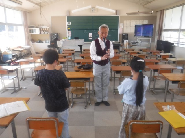 11月27日(木)にある「橋っ子音楽会」に向けて、4年生代表の2人が水道管尺八の練習をがんばっています!