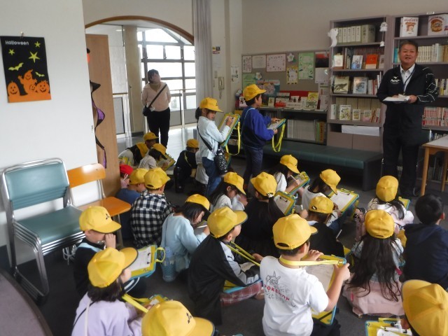 2年生は町たんけんの1回目として、紀見北地区公民館の見学をしました。館内では、研修室や図書室などを見せていただき、公民館でどんな活動が行われているのかを学びました。