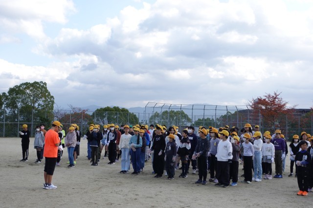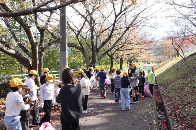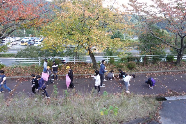 中学校区の園や小学校、中学校の子どもたちが「自分たちの地域を美しくしよう」という目的で活動します。三石小の子どもたちは新和会のみなさんと共に清掃活動を行いました。あいにくの昨日の雨で落ち葉は濡れて湿っている状態でしたが、子どもたちは気にせずどんどん落ち葉を拾います。最終、子どもたちが拾い集めた落ち葉の量は、ごみ袋で30袋以上でした。大変良くがんばりましたね!