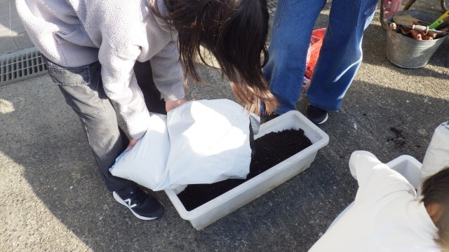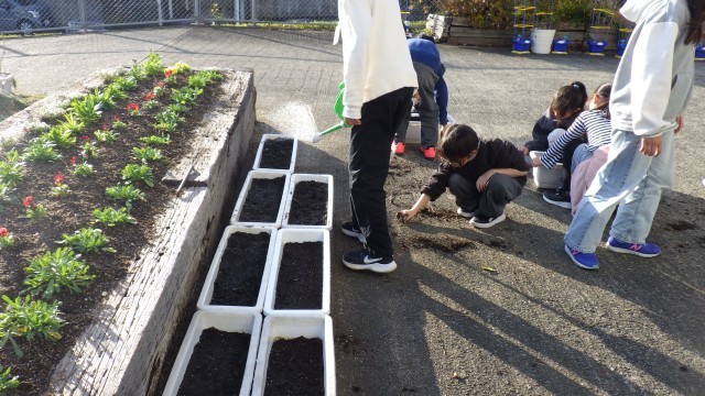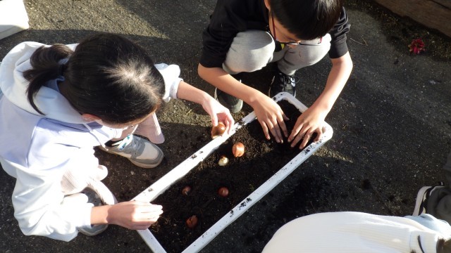今年も、チューリップの球根を和歌山県からいただいたので、環境委員会のみなさんで植えました。