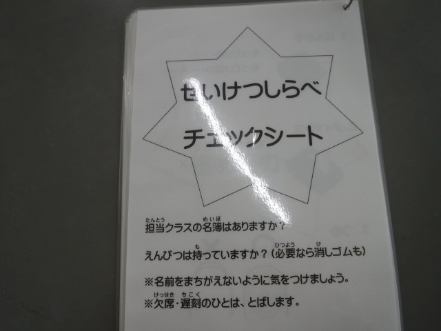 どの子も自分の手で爪の伸びをチェックしながら、清潔調べの仕事を頑張ろうと、真剣に耳を傾けていました。