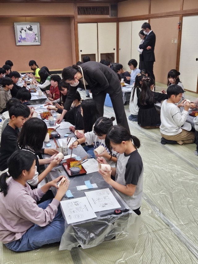 一日活動して疲れましたが、旅館では美味しく晩御飯をいただいて、絵付け体験をしました。まだまだ元気!?