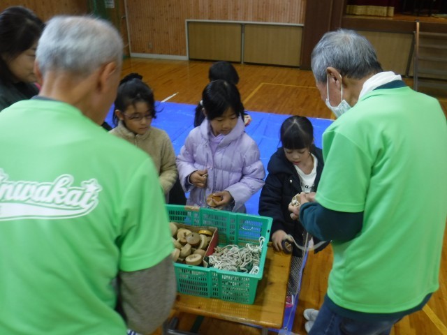 1・2時間目に新和会の方々に来校していただき、むかしあそびを教えてもらいました。