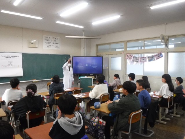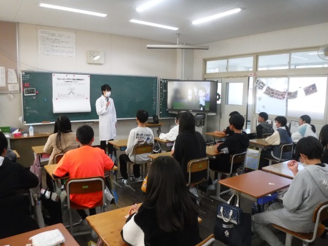 先生からのお話を聞いたり、動画をみたりしながらたばこやアルコール依存症のこわさ、オーバードーズについて学びました。