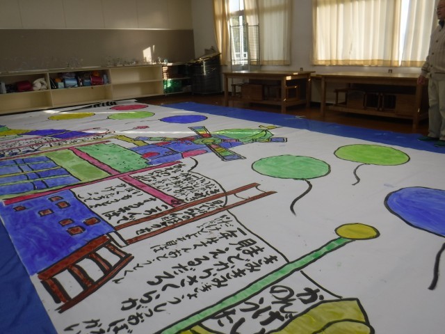 入学式の壁面かざりが完成しつつあります。