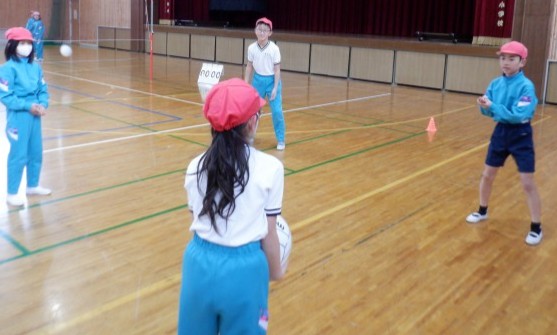 各チームで円になってのレシーブ練習では、10回近く続く様子もあり、声を掛け合う姿も見られました。しかし、「いざ試合!」となると、なかなか上手くボールを繋げないものですね…それでも、声を掛けたり、一生懸命ボールを追いかける姿も見られ、異学年編成のチームでも力を合わせる素敵な活動ができました。