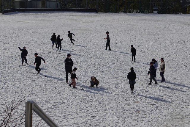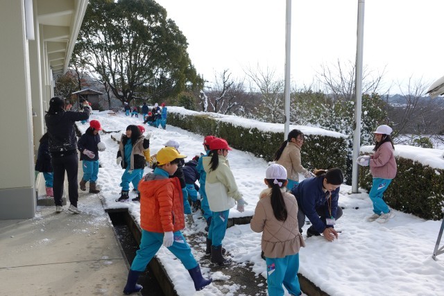 たくさんの学級・学年が雪遊びをしていました。