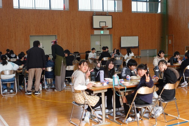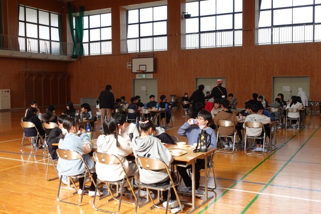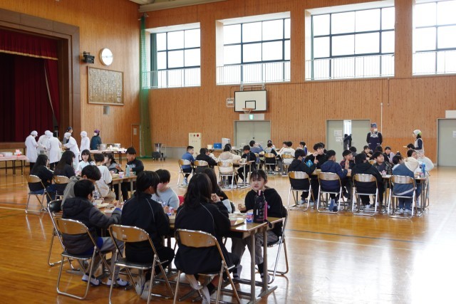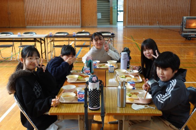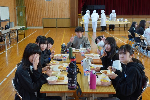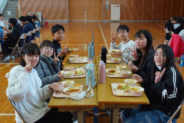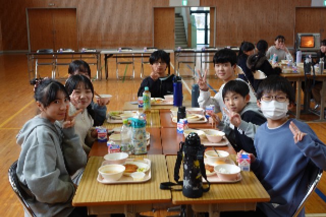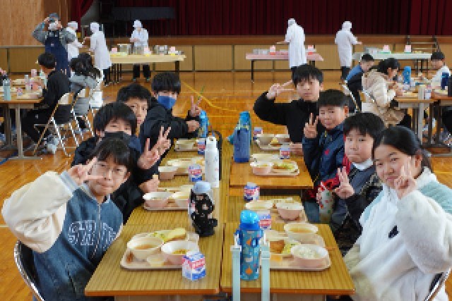 ミニバイキング給食(6年) 2 公開日 2026/02/12 更新日 2026/02/12 6年生の部屋 食べ始めたところです。 いつもと違う場所で、いつもと違う食べ方です。また一つ楽しい思い出が増えそうです。 なお、給食見本の写真は検食用に全てを盛りつけたものです。子どもたちは、おかわりをしながら食べたいものを食べていました。 +7