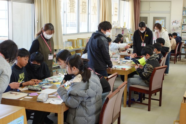 6年生は、橋本市の家庭教育支援チーム「ヘスティア」さんにお世話になりながらスクラップブッキングづくりです。