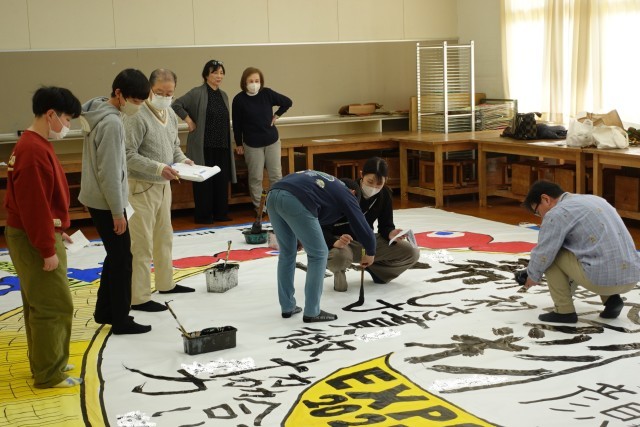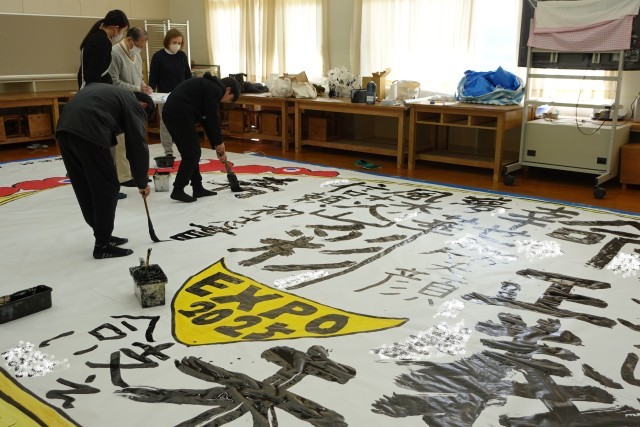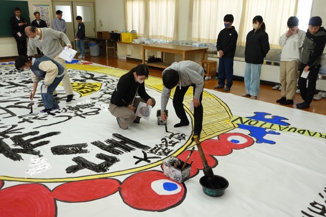 書道クラブでもお世話になっている篆刻家・書道家の三田象山先生にご指導・ご協力していただきながら、今年も卒業記念作品を制作中です。