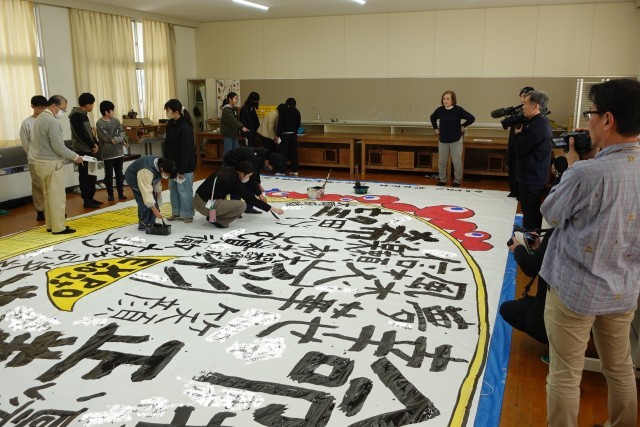 今年は、NHK、テレビ和歌山、毎日新聞、高野山麓橋本新聞の方が取材に来ていただいていましたが、それでも子どもたちは、一発勝負で堂々と自分の思いを書き上げていきます。すばらしい!
