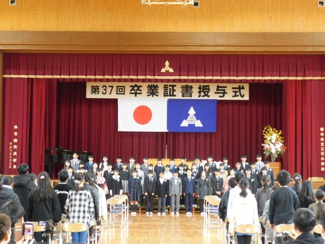 令和7年度の卒業証書授与式が行われ、6年生45名の児童が卒業の日を迎えました。