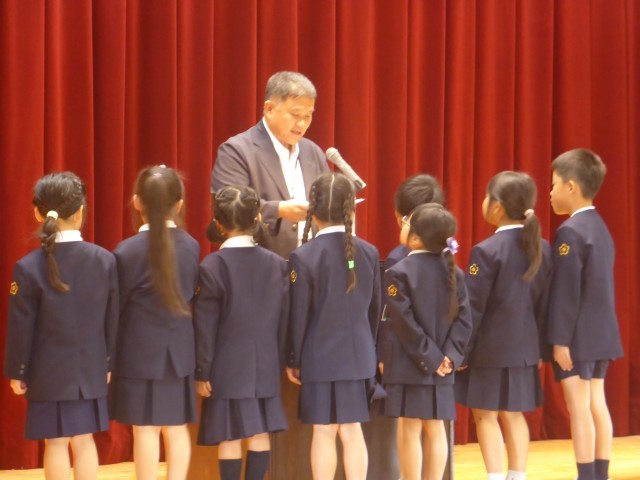 1時間目に2学期の始業式が行われ、今日から2学期がスタートしました。新しい児童会役員さんの認証式があり、児童会役員さんから一人一人の決意をみんなの前で話してもらいました。どんな児童会活動をしてくれるのか楽しみです。その後、校長から夏休みに本を20冊以上読んだ児童へ表彰状が授与されました。1年生から6年生まで25人の児童が20冊を達成しました。読書の秋です。この後も夏休み読書カードを受け付けますので20冊目指してみんな表彰状をゲットしましょう。
