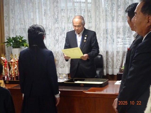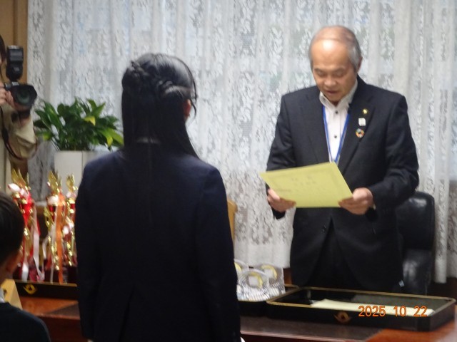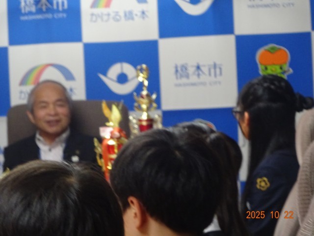 第9回橋本市図書館を使った調べる学習コンクールの表彰式が市長室で行われました。本校6年生児童が187点の応募作品の中から見事最優秀賞に選ばれ市長さんから表彰していただきました。本当におめでとうございます。