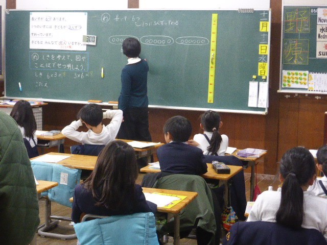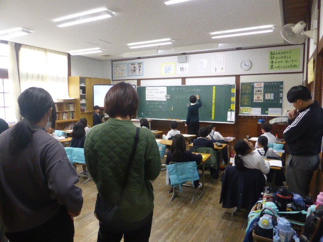 2年生A組の公開授業がありました。先生たちが2Aの授業を観て学びます。子どもたちも多くの先生に観られている中でしたが、手を挙げ自分の意見を言い、また友だちの意見をしっかり聞き、練り合う授業ができていました。