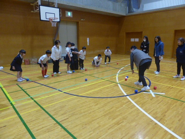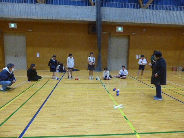 ボッチャの体験会が開かれました。これはボッチャのルールを学び11月30日(日)の公民館主催ボッチャ大会に参加することです。参加できる児童の皆さんはぜひ参加してボッチャを地域の人と一緒に楽しんでくださいね。親子でもOK、1年生でも大丈夫です。
