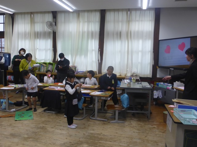 生活科の研究授業が1Aで行われました。単元名は「あきのすてきを みつけよう」です。自分でみつけたすてきなあきをみんなの前で発表する授業でした。素敵だと思ったことを言語化して伝えることや、地域の自然や人とのつながりを大切に思う気持ちが育つことを願っています。