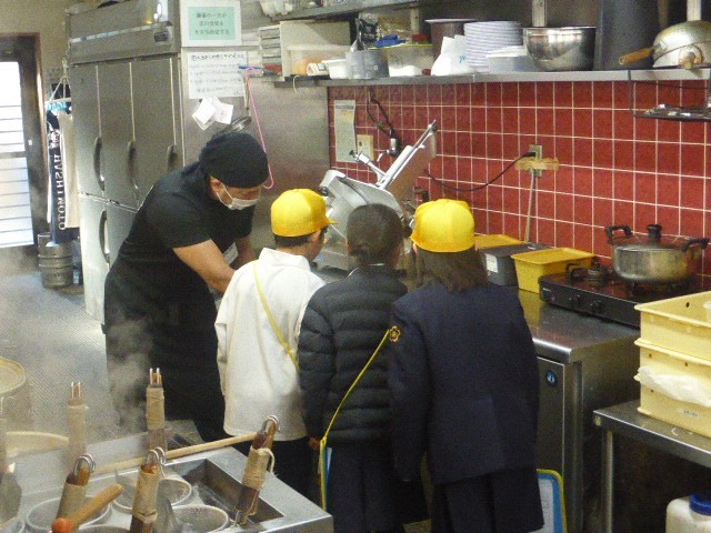 2年生の町探検が今日から始まりました。自分たちで選んだ高野口のお店に調査に行きます。探究学習の始まりです。興味関心を持ったお店についていろいろと聞きたいことをメモし、探究していく学習となります。本日のグループは、高野口の湯・松源・来来亭に出かけました。