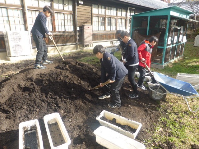 縦割りでチューリップの球根を植えました。このチューリップは、4月に新しく入学してくる1年生のためのチューリップです。1年生にきれいな学校だなあと思ってもらえるよう、みんなで力を合わせ球根を植えました。3年生の子どもたちは、ロング休憩にプランターへの土入れを頑張ってくれました。主体的な活動にとても感心しました。