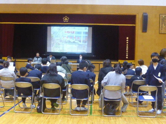6年生は、まず親子でレクリエーションを楽しみました。その後、高野口中学校から校長先生をはじめ3名の先生方にお越しいただき、中学校の入学説明会が行われ、親子で聞いていただきました。制服採寸もあり、徐々に卒業に向かって歩み始めています。