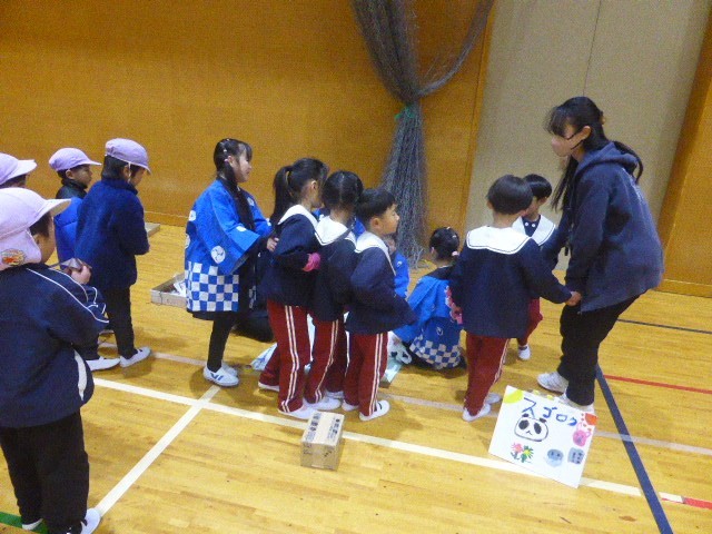 なかよし会では、1年生が「新1年生と一緒に楽しめること」を考え、「なかよしまつり」を行いました。